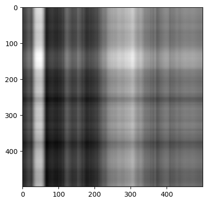 # (500, 500) (500,) (500, 500)여기서 500개의 singular value를 사용하지 않고 단 1개만 사용하면 어떤 이미지가 나올까요?